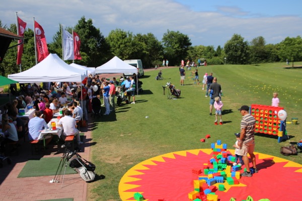 In diesem Bereich vor dem Clubhaus sorgt das Team des GASTHAUS mit einem vielfältigen Angebot an Speisen und Getränken für beste Verpflegung zu günstigen Preisen. Auch wird es eine Hüpfburg und einen Spielplatz für unsere kleinen Gäste geben und ab 14:00 Uhr spielen die „Rossini’s“ live auf der Clubhaus-Terrasse für Sie. Abgerundet wird unser buntes und vielfältiges Rahmenprogramm durch Besichtigungsmöglichkeiten unseres Maschinenparkes und durch Rundfahrten auf dem Golfplatz mit den clubeigenen Golfcarts.