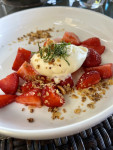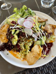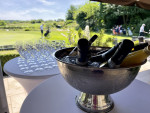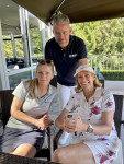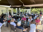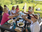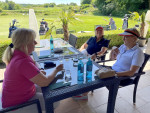 Nach der Runde wurden die Ladies auf der Terrasse mit einem Aperitif von Volker Schmidt vom Autohaus BMW Rhein freudestrahlend empfangen. Danach konnten sich alle Damen mit einem Salat mit Putenstreifen nach den gespielten 9 Loch stärken.