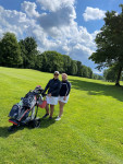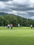 Am Samstag ging es nach dem morgendlichen Sportprogramm wieder ab auf den Freiburger GC, um den Platz kennen zu lernen. Trotz des gleichen CR-Werts wie unser Heimatplatz, kam er uns deutlich schwieriger vor. Viele Penalty Areas und enge Bahnen zeichnen den Freiburger Golfplatz aus. Es gibt jedoch auch einige Par 5, die man mit dem zweiten Schlag angreifen kann, wenn man sich traut. Mit der Kulisse des wunderschönen Schwarzwalds im Hintergrund und Grüns in einem überragenden Zustand hatten wir viel Spaß in der Einspielrunde. Unser Kredo für den Spieltag: BALL IM SPIEL HALTEN!