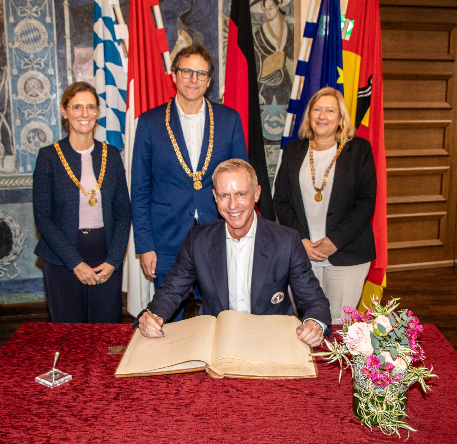 Insofern bin ich extrem dankbar dafür, dass wir in Würzburg angekommen sind in der Sportgemeinschaft der Stadt und die sportlichen Erfolge unserer Teams gewürdigt werden. Ich freue mich sehr über die große Ehre und Wertschätzung, die unserem Team und mir mit dem Eintrag in das Goldene Buch der Stadt Würzburg zu teil wurde.