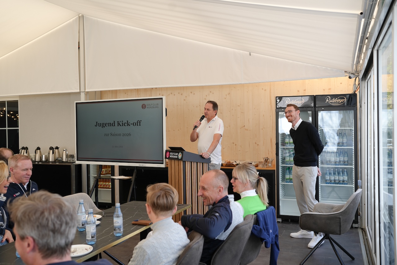Nach der Begrüßung durch Vizepräsident Jugend Marcus Traut, der den Nachmittag auch moderierte, gab er einen Ausblick auf eine abwechslungsreiche und spannende Saison. Neben dem Saisoneröffnungsturnier am 25. April 2026, das bereits zum fünften Mal zugunsten der Würzburger Kindertafel stattfinden wird, ist in diesem Jahr erstmals ein Drei-Generationen-Turnier geplant. Zudem berichtete er von einem besonderen Highlight: dem Aufenthalt einer Jugenddelegation im schottischen St. Andrews sowie dem Beginn einer Kooperation mit der St. Leonards School inklusive Golfcamp.