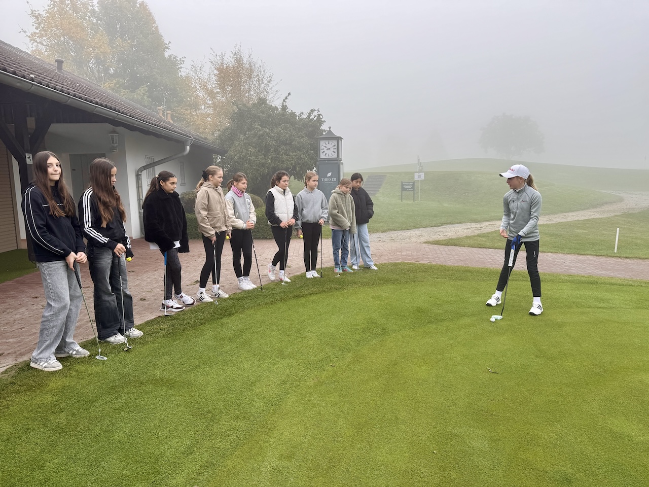 Nach einer kurzen Begrüßung und Einführung durften die Kinder erste Abschläge ausprobieren und das kurze Spiel beim Putten üben. Eine kleine Pause mit Getränken und Gummibärchen sorgte für die nötige Energie, bevor sich die Kinder in einem abschließenden Putt-Turnier unter Wettbewerbsbedingungen messen konnten. Der Spaß kam dabei nicht zu kurz – und bei einigen blitzte bereits echtes Talent auf.