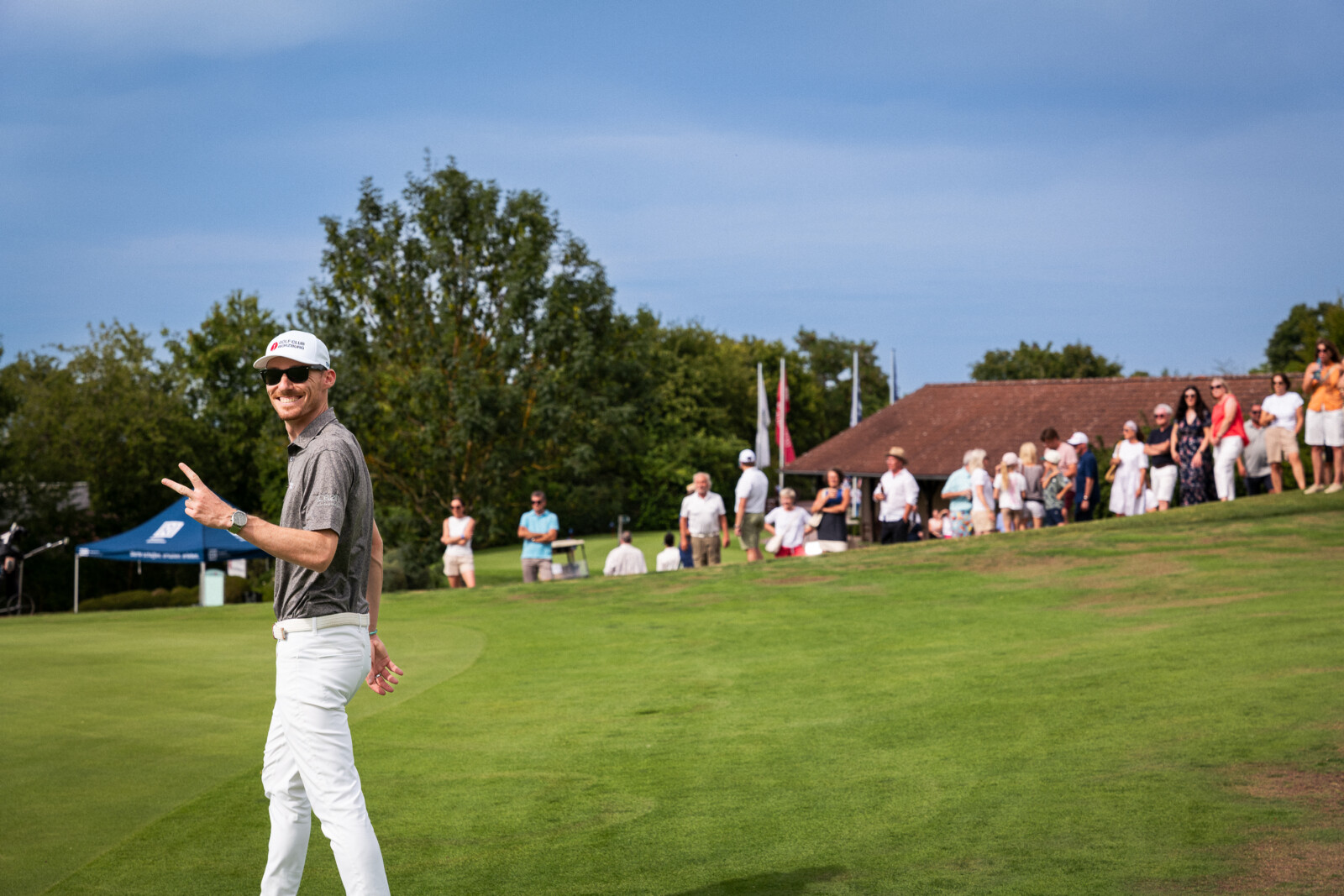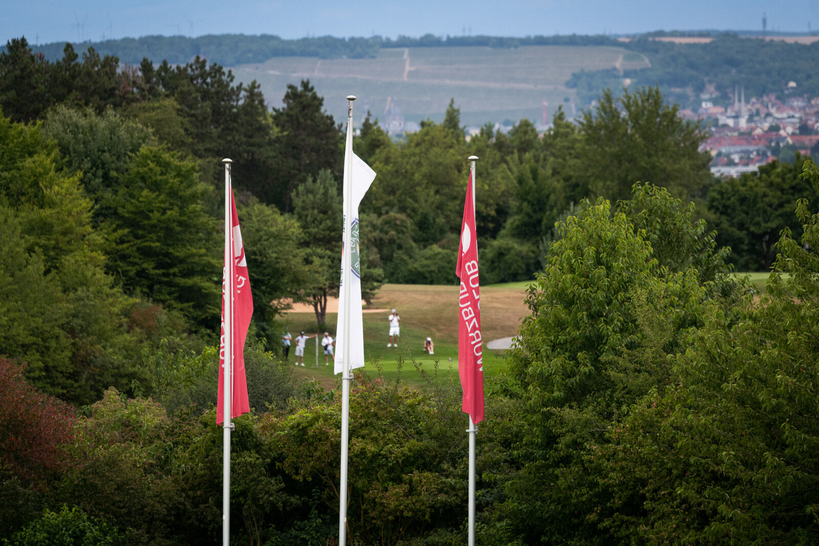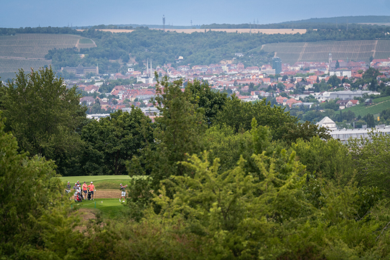 Doch dieser Aufstieg war keineswegs sicher: Man musste an den weiterhin sehr starken St. Leon-Rotern vorbeiziehen – ein Punktgleichstand hätte aufgrund der schlechteren Gesamtschlagzahl nicht gereicht. Die Spieler aus St. Leon-Rot erwischten auch den besseren Start: Über die ersten neun Löcher der Einzel erarbeiteten sie sich einen Vorsprung. Diese sind die deutlich schwierigeren Bahnen des GC Würzburg, dessen Platz hoch über der Stadt liegt und spektakuläre Blicke auf die Festung Marienberg bietet.