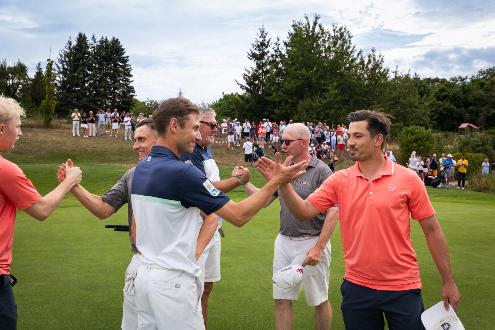 Ein besonderes Highlight setzten Maximilian Hebenstreit und Luis Frischmuth, welche von Loch 7 bis 13 fünf Birdies und ein Eagle notierten und sich am Ende mit einer -3 belohnten. Sven Günther und Philipp Johne beendeten ihre Runde mit drei Birdies in Folge und lieferten mit -4 den besten Vierer des Tages. Rafael Schwarz und William Pearman rundeten mit einer sehr stabilen +1 ab, was den Routiniers Tim Hillerbrand und Justus Pehl (+2) etwas Luft verschaffte.