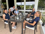 Direkt im Anschluss an die Vormittagsrunde auf den Löchern 1 – 9 freuten sich alle Teilnehmerinnen, dass man sich wieder gesellig auf der Terrasse des „Gasthauses“ treffen konnte. Unser Präsident Bernhard May begrüßte die Damen sehr herzlich und durch die Siegerehrung führte das neue „3er-Team“ der „Ladies Captain“, Martina Stock, Nadine Schemel und Bianca May.