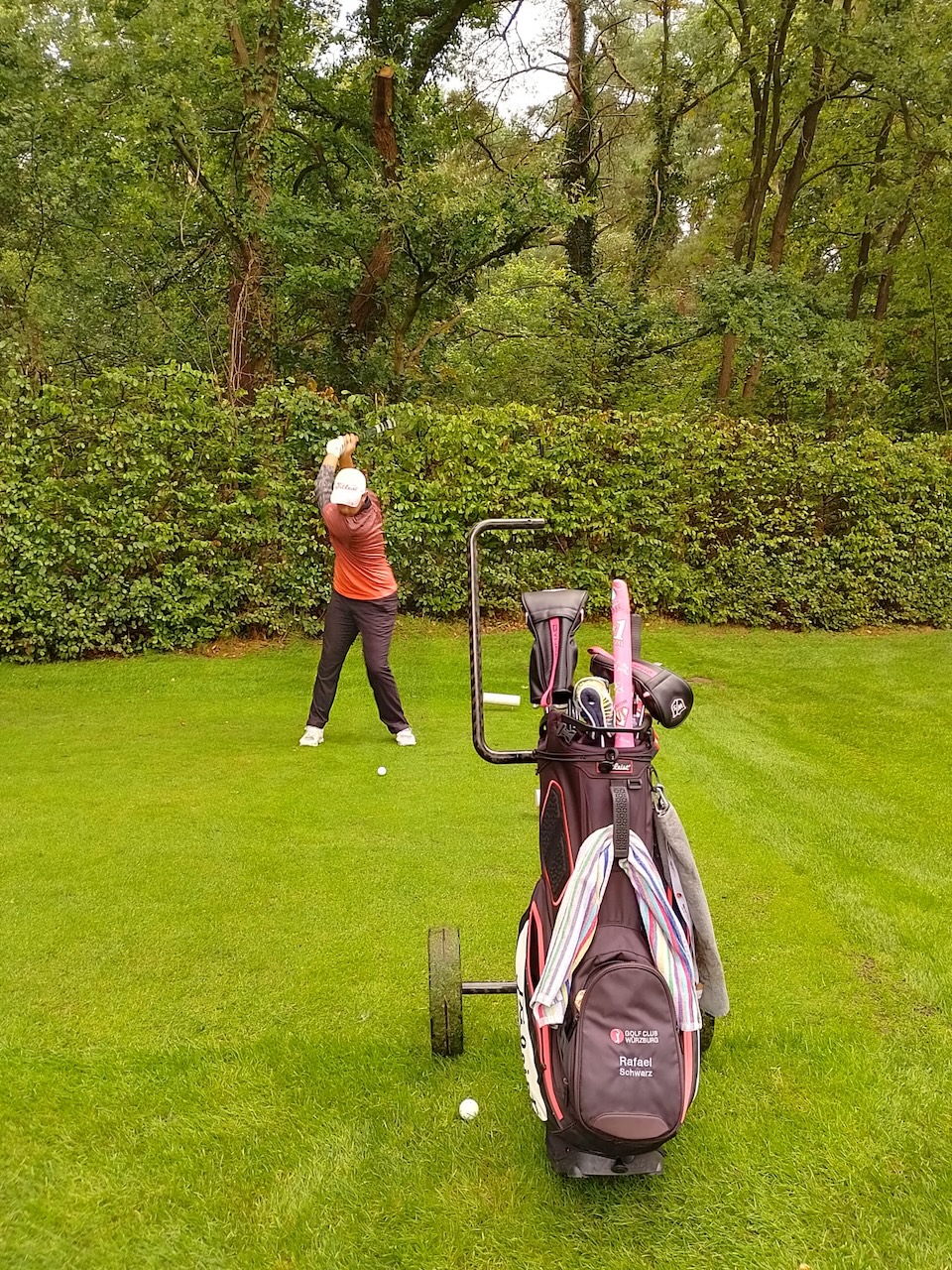 Für Rafael AK 18 ging es dieses Jahr nach Bremen in den Club zur Vahr (gegründet 1905), Par 74 von weiß. An Tag 1 spielte er auf den ersten neun Loch beeindruckendes Golf, lag nach even par nur einen Schlag hinter Platz 1. Nach Abschlag 10 zog ein schweres Gewitter auf und hatte eine zweistündige Pause zur Folge. Zurück auf dem Platz reihte sich ein Fehlschlag an den anderen, was auf dem engen Waldkurs hart bestraft wurde. Am Ende war es eine +9 und Platz 40. Die Enttäuschung war groß, nachdem das Turnier so verheißungsvoll begonnen hatte. 25 Spieler kommen ins Finale, der Cut sollte nach zwei Runden bei +9 liegen. Der Druck, am zweiten Tag eine even par Runde zu spielen war immens. Rafael kämpfte um jeden Schlag, leider wollten die wichtigen Putts nicht fallen, am Ende stand eine +7. Mit Platz 38 (+16) und gesenkten Hauptes ging es auf den Heimweg.