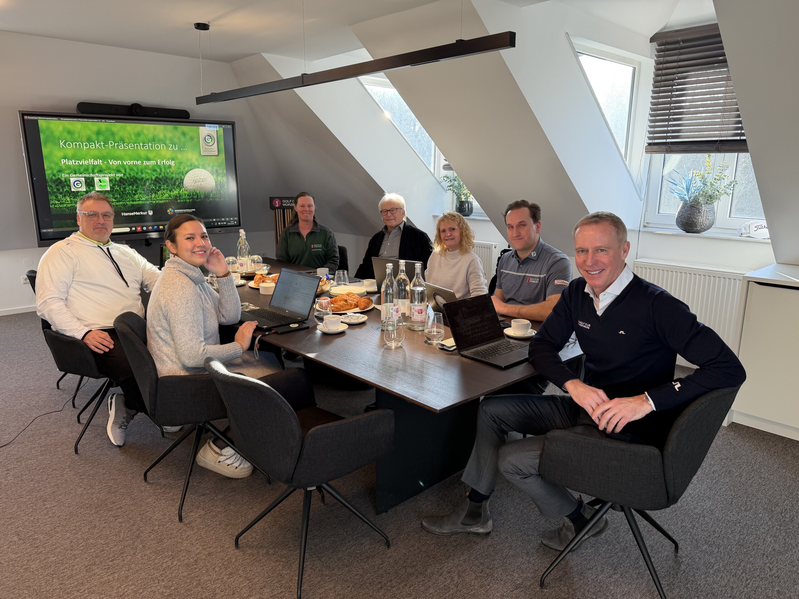 Zum spannenden Kick Off Workshop im GC Würzburg hatte Clubpräsident Bernhard May „Platzvielfalt“ Projektleiter Malcolm Gourd vom Deutschen Golf Verband in Wiesbaden zusammen mit ausgewählten Mitgliedern des Würzburger Teams in den Konferenzraum im Clubhaus eingeladen. Gourd, der beim DGV u.a. auch für Golfregularien & Course Rating zuständig ist, begeisterte mit einer inspirierenden Präsentation die Teilnehmer für das zukunftsweisende Projekt, das Einsteigern und Fortgeschrittenen durch kürzere Spielbahnen mehr Spielfreude und ein schnelleres Spiel bringen wird.