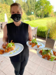 Beim anschließenden Aperitif und dem gemeinsamen Mittagessen auf der Terrasse des Clubhauses herrschte beste Stimmung bei allen Ladies. Die Küche des „Gasthaus“ verwöhnte mit einem köstlichen „Glasnudelsalat mit Tempura-Garnelen“.