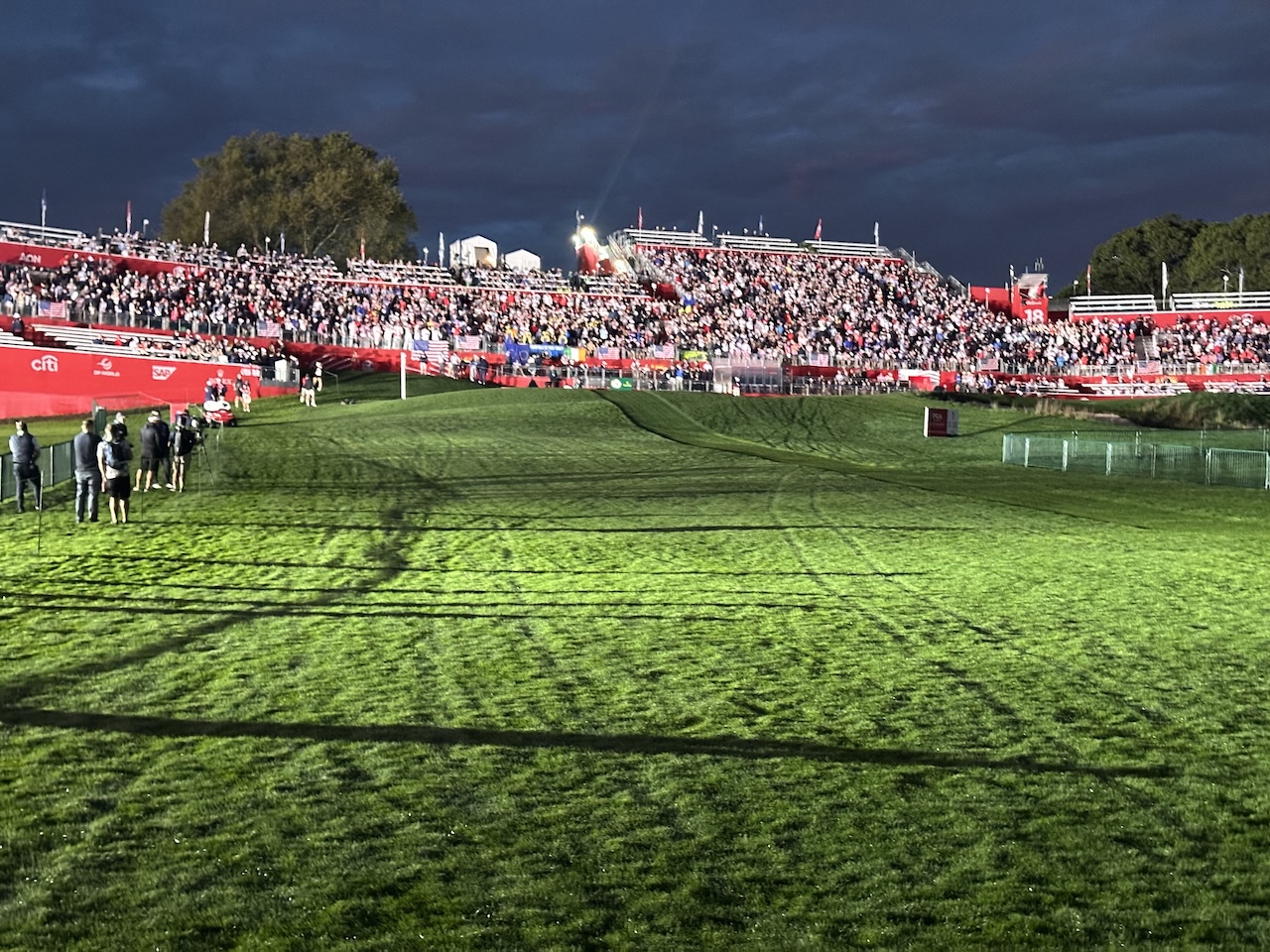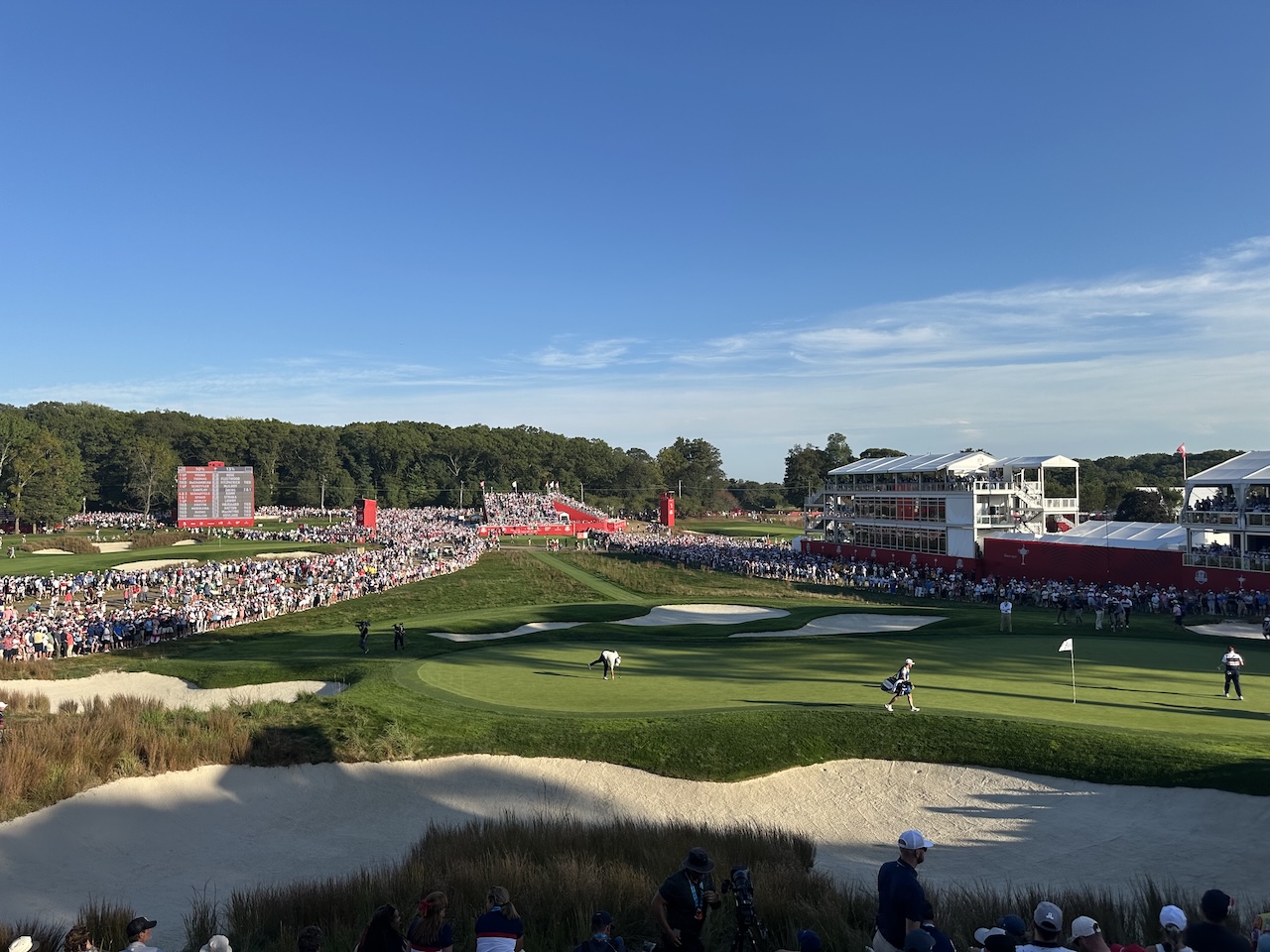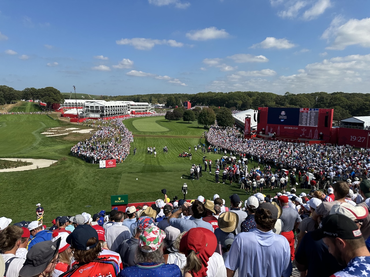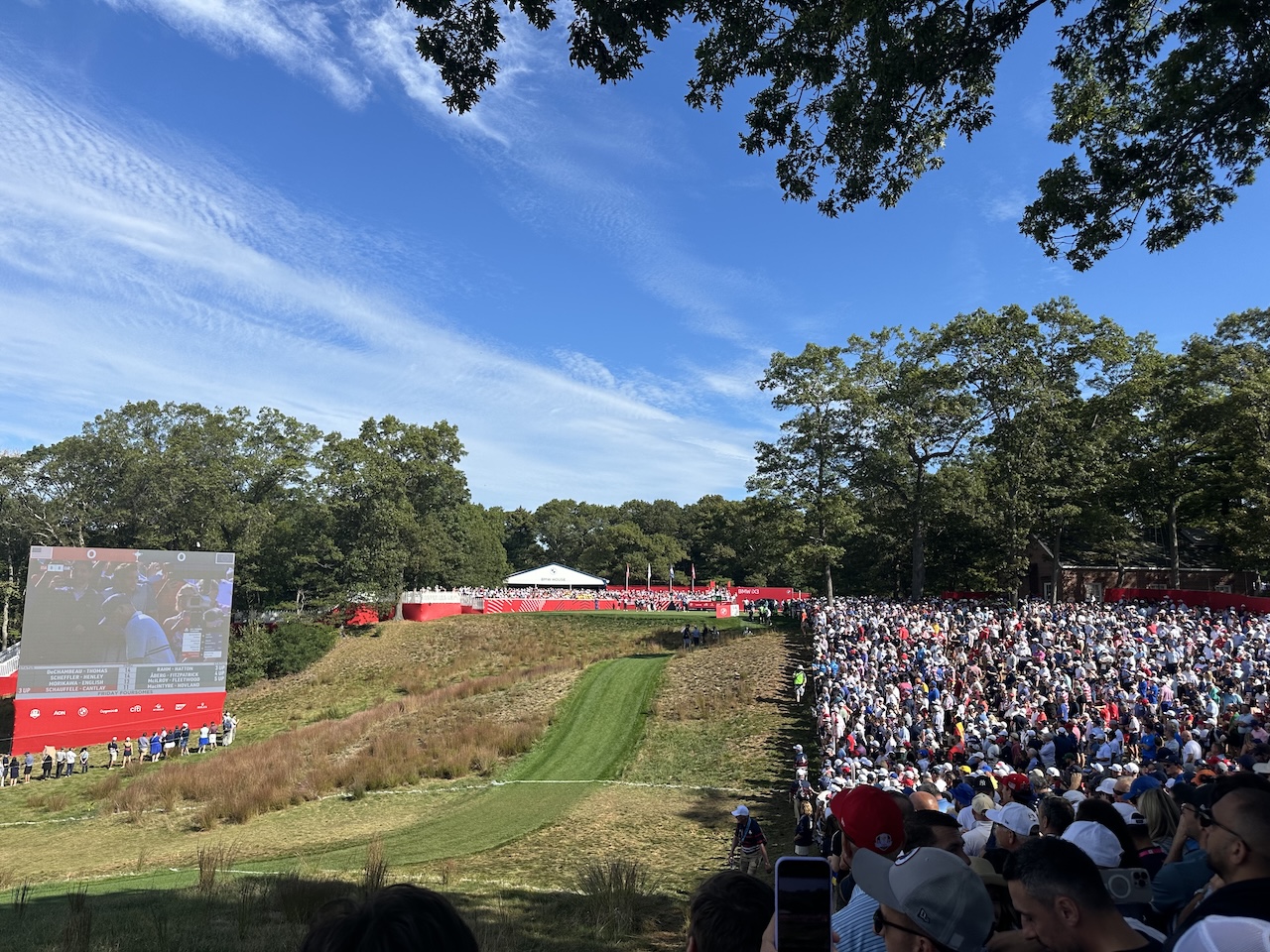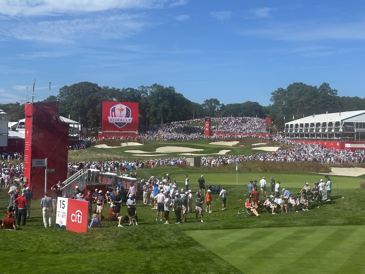 Grundsätzlich bin ich sehr dankbar, dass ich bei diesem grandiosen Golfturnier, das auf dem extrem schweren Bethpage Black Course auf Long Island stattfand, dabei sein konnte. Mit einer beeindruckenden Leistung spielten die Europäer das amerikanische Team an den ersten beiden Tagen „an die Wand“. Das Stichwort war „europe makes the noise“! Da half auch der theatralische Besuch des amerikanischen Präsidenten am Freitag nichts, der von Randerscheinungen wie einem Tiefflug der Air Force One über den Golfplatz während der Vormittagsrunde, Secret Service Agents als Taschenkontrolleuren und einer schwer bewaffneten Eliteeinheit am ersten Abschlag begleitet wurde. So schwach „Team USA“ gestartet war, so beeindruckend kämpfte es sich am Finaltag zurück („Chapeau“) und sorgte für knisternde Spannung. Das Ende der Sonntagsrunde fühlte sich atmosphärisch an wie eine Stierkampfarena – auch ich hätte auf dieses enge Finale gerne verzichtet.
