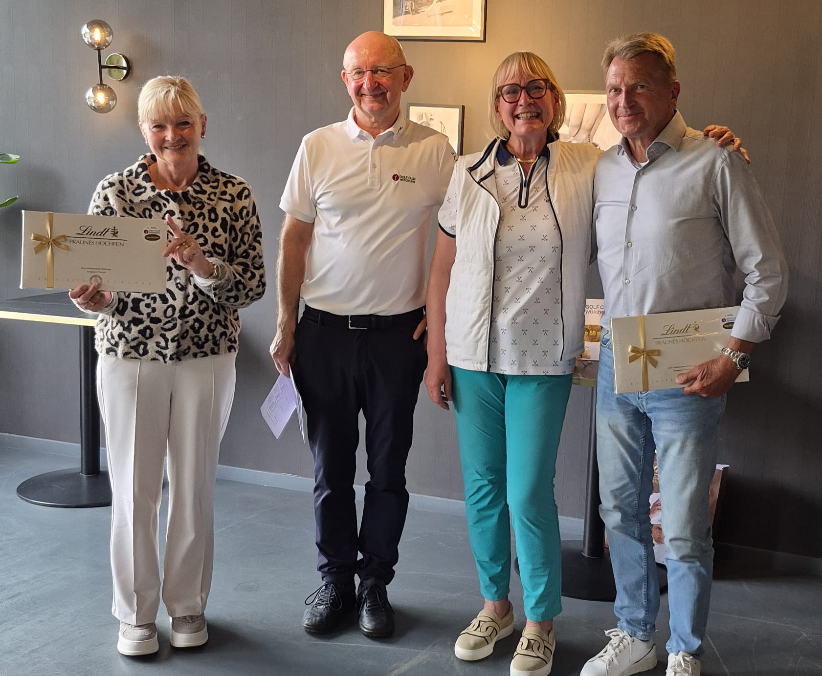 Mit 31 Bruttopunkten erzielte das Team Michael Zimmer und Norbert Wagner das beste Ergebnis. Auch für die weiteren Siegerteams gab es ausgewählte Preise aus erlesener Schokolade!