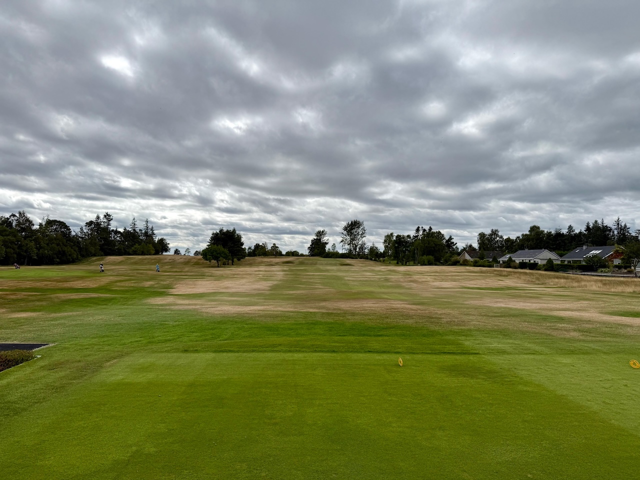 Am nächsten Morgen brachte uns der Bus nach Edzell, einem Inland Course etwa 40 Minuten nördlich von Dundee. Das Dorf hat gerade einmal 840 Einwohner, aber – wie so oft in Schottland – natürlich einen Golfclub. Ein Sturm vor einigen Jahren zerstörte über 300 Bäume, und der Platz liegt heute vielleicht näher am Original-Layout von 1895 als jemals in den letzten 100 Jahren. Geblieben ist eine clevere Architektur: Fairway-Bunker, die genau dort warten, wo der Drive landet. Legst du kurz ab? Rollen die Konturen den Ball hinein. Versuchst du, sie zu überspielen? Springt er zurück. Highlights der Front Nine sind die Löcher 8 und 9 entlang des West Water, eines klaren Forellenbachs. Auch die Schlusslöcher 14 bis 18 sind bemerkenswert: Das bergauf führende Par 3 der 14 kann die Scorekarte ruinieren. Am 15. kannst du vom Eisen 8 bis zum Driver alles vom Tee spielen. Am 16. musst du vorausschauend planen, um den Schlag ins erhöhte Grün richtig vorzubereiten. Das lange Par 5 der 18 bietet Birdie-Chancen – solange du die tückisch platzierten Bunker meidest.