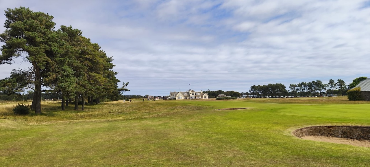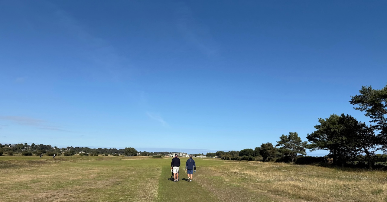 Das Zuschlagen der Taxitür mischte sich mit dem klackenden Rhythmus der Schläger, als wir durch die enge Gasse von einem Wohnviertel in Dundee hinaus zu den Monifieth Golf Links gingen. Hier wird seit fast 500 Jahren Golf gespielt, und bis vor kurzem hatten vier verschiedene Clubs dort ihr Zuhause, jeder mit eigenem Clubhaus nahe dem 18. Grün. Eigentlich stand es gar nicht auf dem offiziellen Programm, aber schon im Bus vom Flughafen Edinburgh zu unserem Hotel in Broughty Ferry kam die unvermeidliche Idee: „Ruf doch einfach im Pro Shop an und frag, ob wir spielen können. Begeisterte Zustimmung von allen Seiten. „Unglaublich, dass wir vor weniger als acht Stunden noch in Würzburg waren!“ Der Tag hatte früh begonnen — eine Tasse Kaffee im Garten bei Sonnenaufgang, im Kopf die Packliste: Rangefinder, Sonnencreme, Regenkleidung, Schirm, kurze und lange Hosen, Windbreaker, Sonnenbrille. Golf in Schottland, auch im August, heißt: sei auf alle Wetterlagen vorbereitet – manchmal sogar innerhalb einer einzigen Runde. Die Runde in Monifieth endete stilecht mit einem Pint und, wie immer, drei Tüten Crisps. Die Highlights und Tiefpunkte, der Schlag des Tages und natürlich der Wind — schmeichelhaft, wenn er von hinten kam, gnadenlos, wenn er von vorne blies — wurden ebenso besprochen wie Pläne fürs Abendessen und die nächste Trainingsrunde in Panmure.